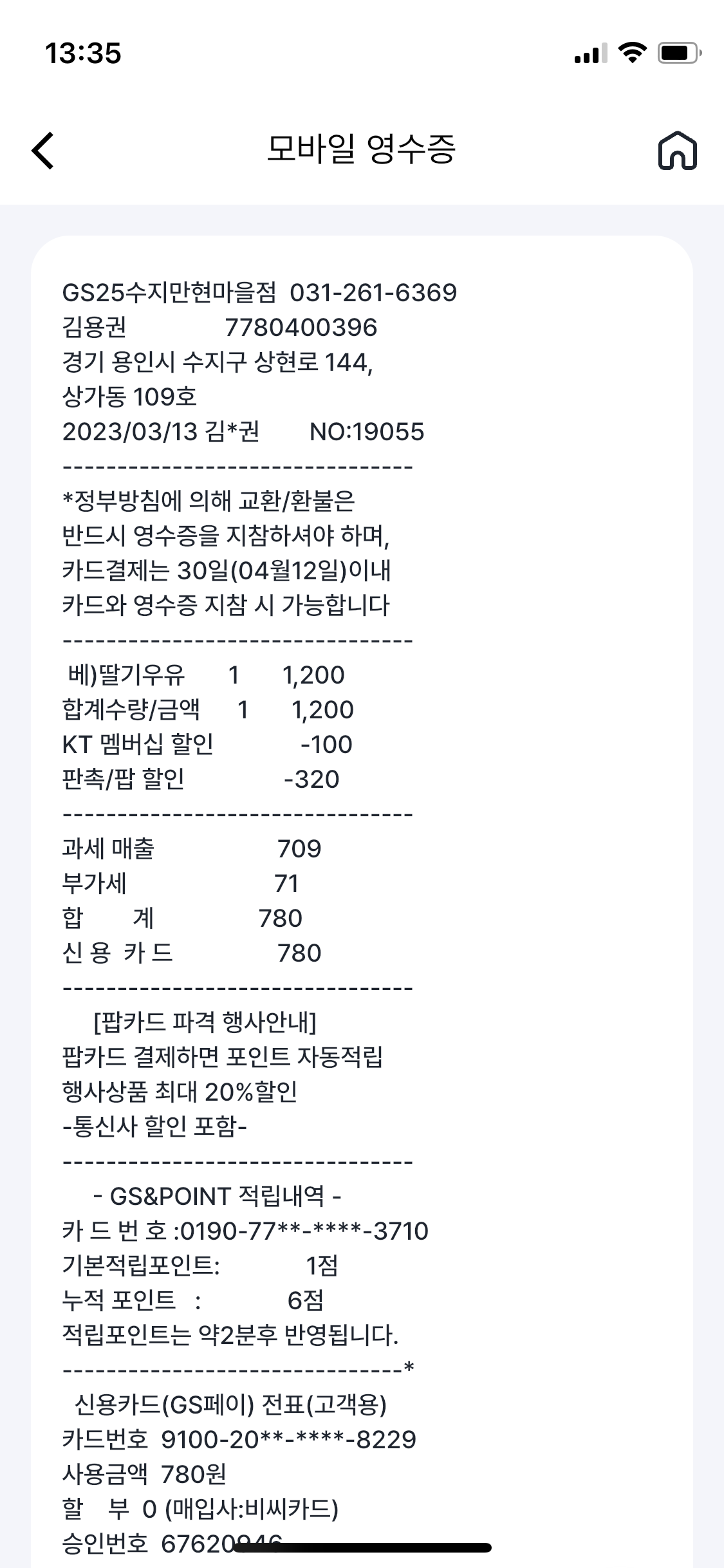 근데, 금액이 780원이다. 뭔가 이상해서 영수증을 자세히 봤다.